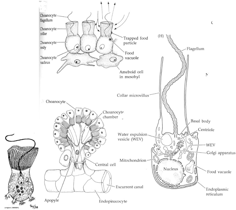 CHOANOCYTES IN PORIFERA OR FLAGELLATED CELLS IN SPONGES