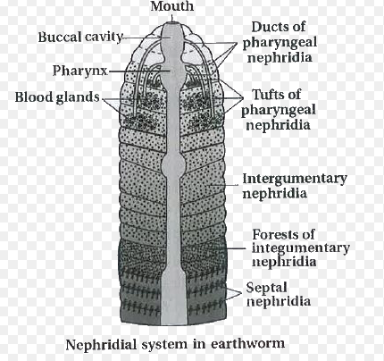 - Pharyngeal nephridia: Found in segments 4 through 6; they discharge into the buccal cavity or pharynx.